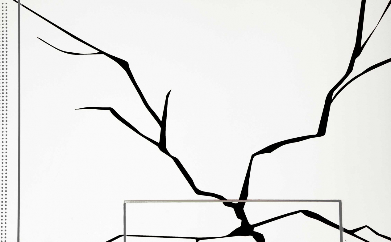 Exhibits, partition walls, tarps and printed panels, flyer, exhibition catalog, cartels